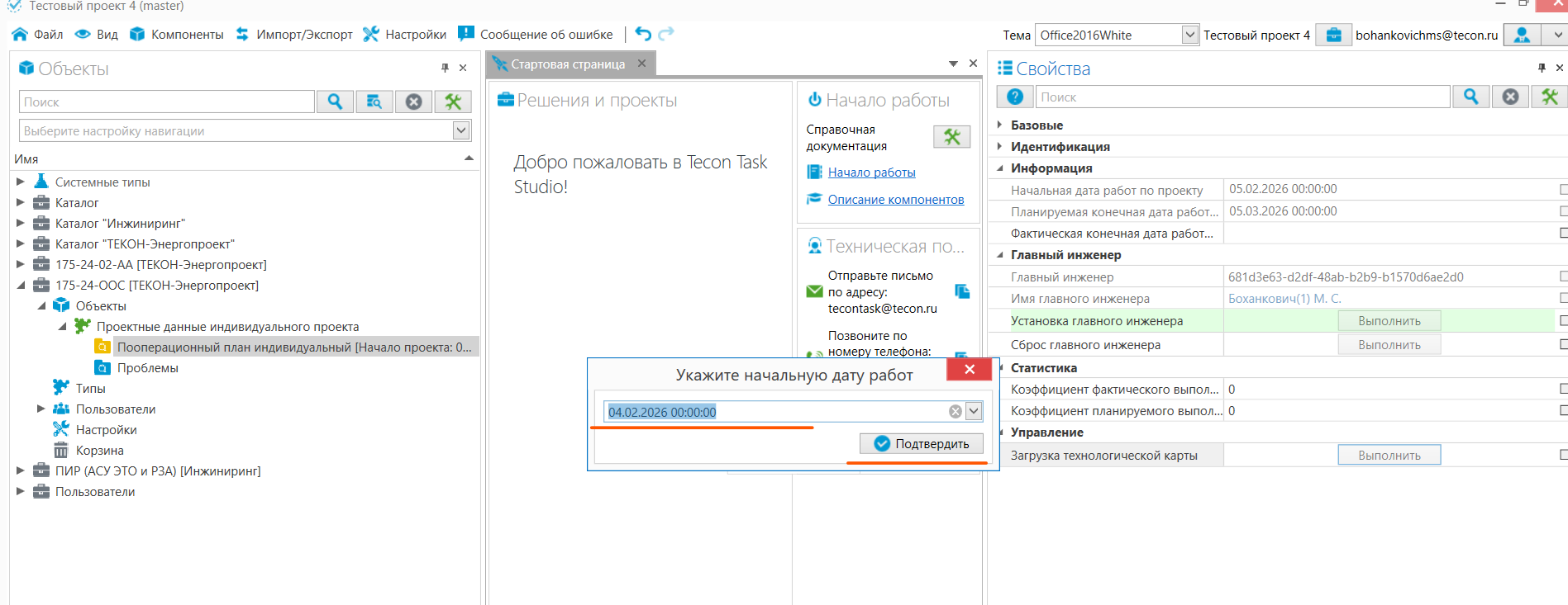 3. Укажите начальную дату работ (Эта дата будет проставлена как плановая дата старта для всех задач. При необходимости даты отдельных задач можно скорректировать позже).