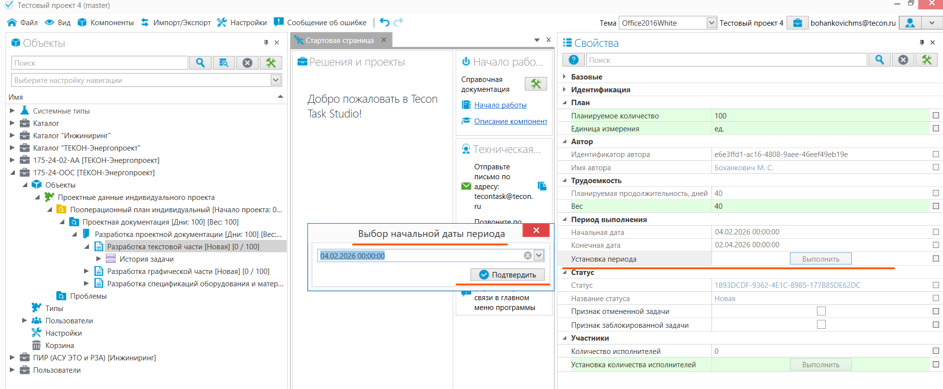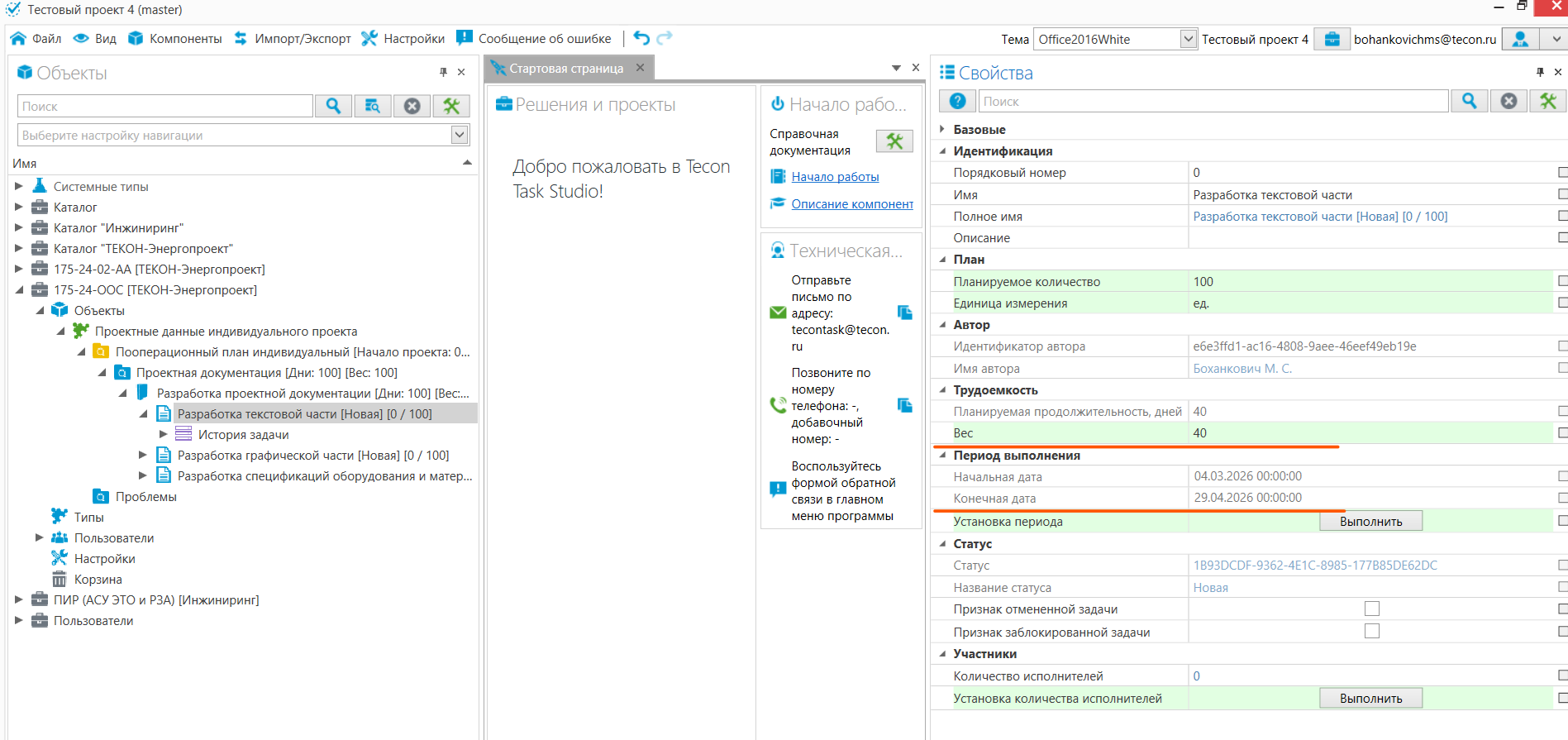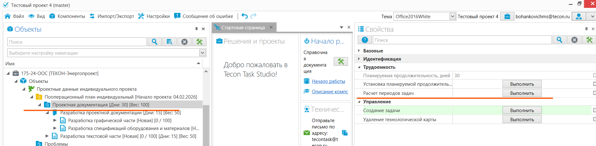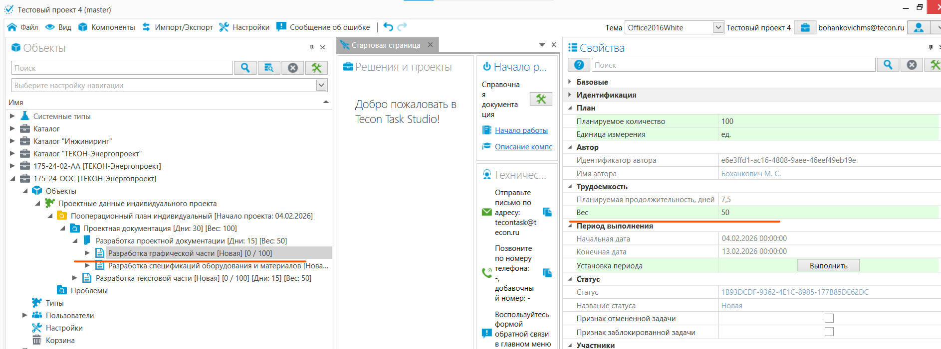 8. Чтобы изменить приоритет задачи (вес) и пересчитать сроки работ, отредактируйте вес в свойствах задачи и нажмите команду «Расчет периодов задач».