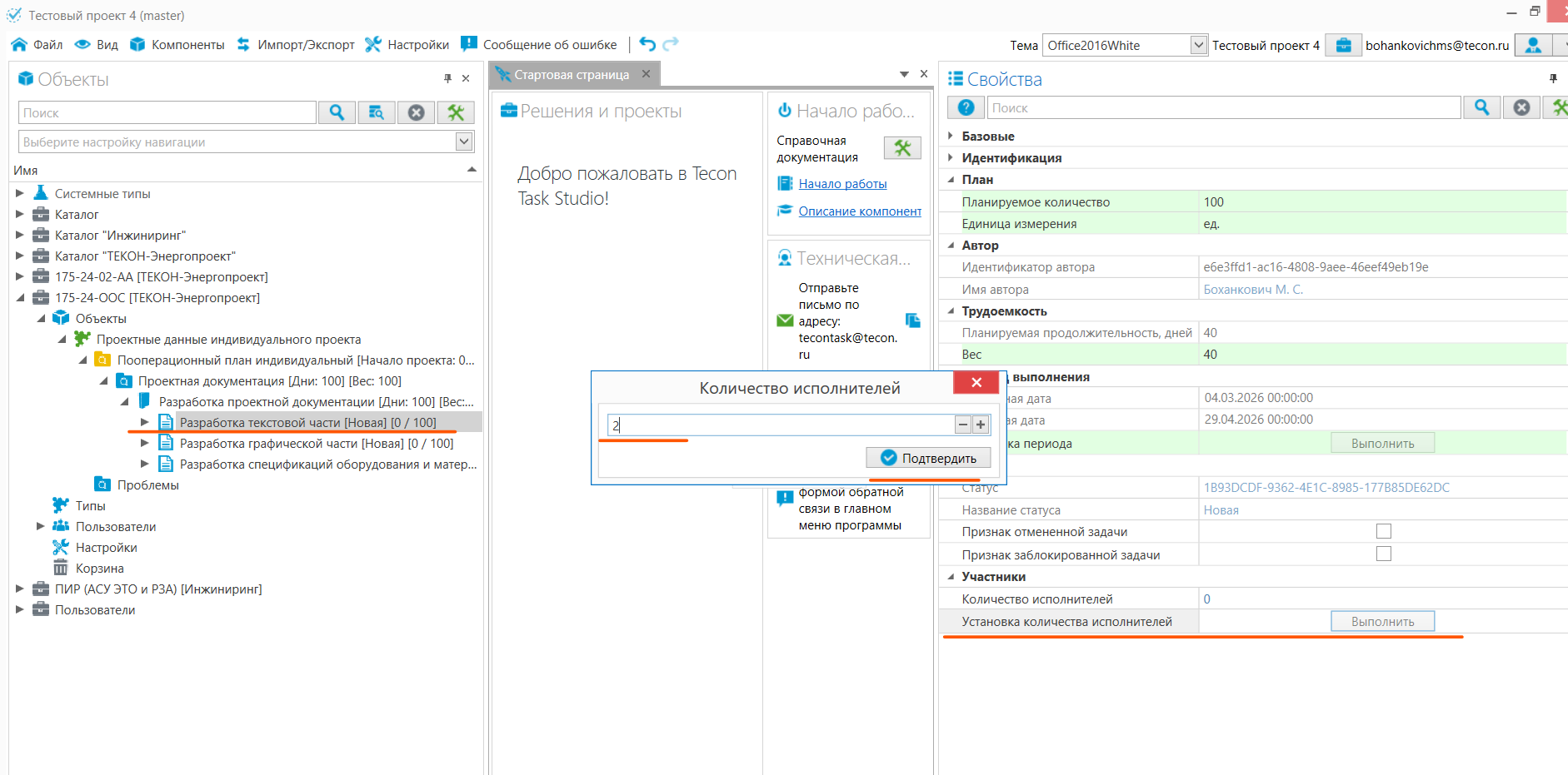 7. Количество исполнителей настраивается кнопкой «Установка количества исполнителей» в свойствах задачи.